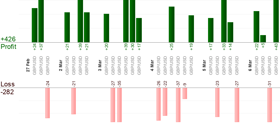 Eine anstehende Order soll beim Empfangen des Signals (zu der "Von"-Zeit) erteilt werden. Die "Bis"-Zeit ist fur erzwungenes Beenden bestimmt. Beliebige offene Handelsaktion gilt als erledigt, wenn die "Bis"-Zeit beinahe erreicht ist. Beliebige anstehende Order wird abgebrochen, wenn die "Bis"-Zeit beinahe erreicht ist. Trailing-Stop verwenden, um Gewinn zu maximieren.