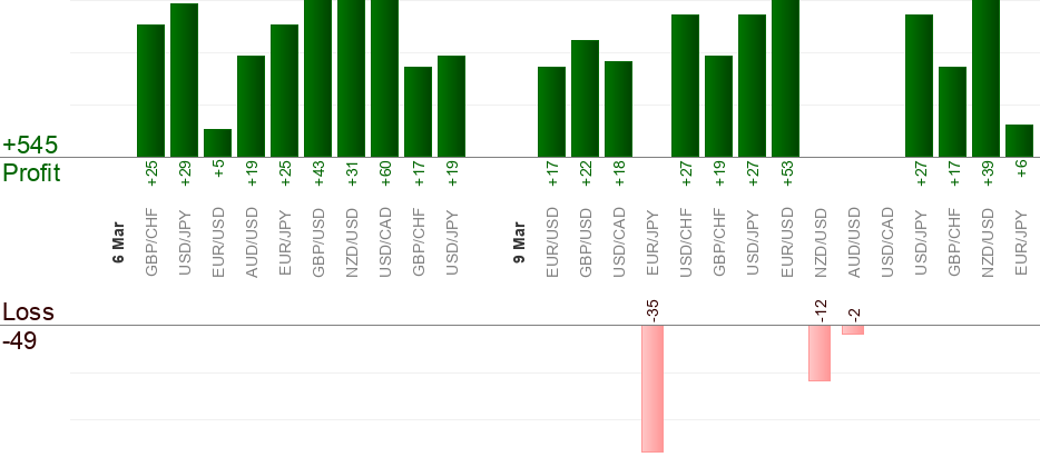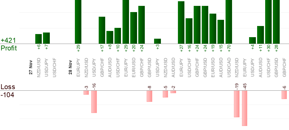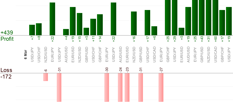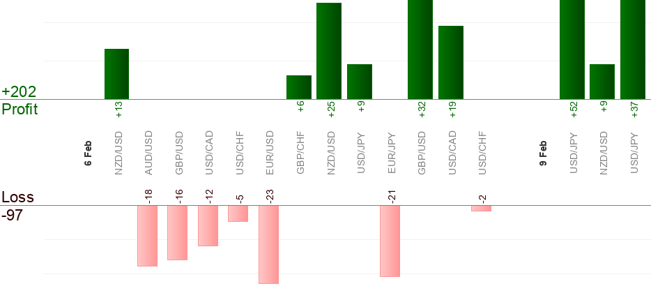 Please keep in mind that different brokers give different quotes at a specific point of time. The difference is usually about 5 pips and perhaps more. To overcome this issue Live-forex-signals.com tries to average quotes from different brokers and provides "average" results. Nevertheless it's possible that your trade reaches entry/take-profit/stop-loss level when Live-forex-signals.com trade doesn't and vice versa due to quote difference.