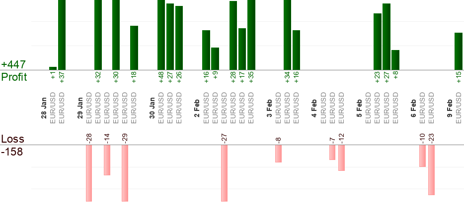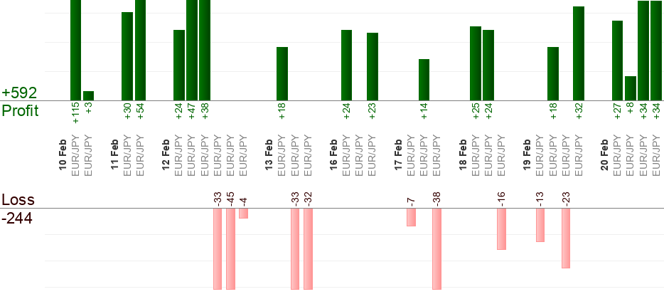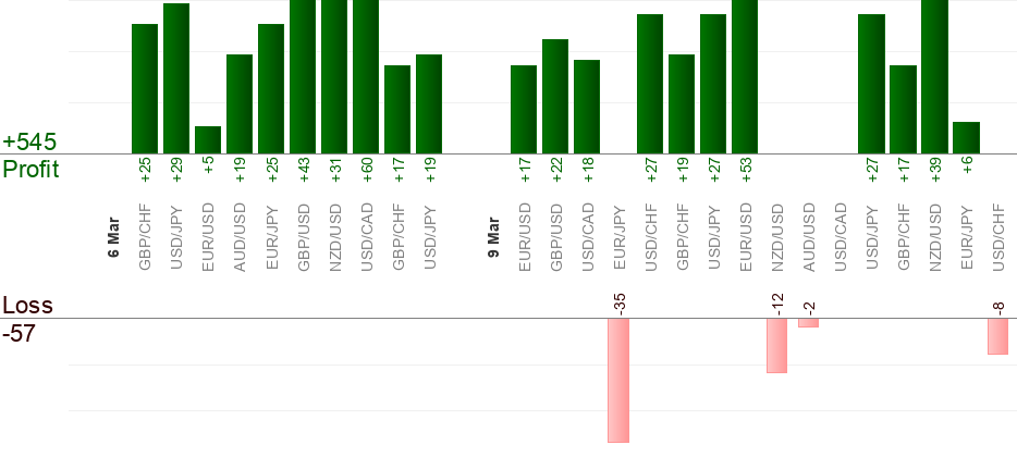 Please keep in mind that different brokers give different quotes at a specific point of time. The difference is usually about 5 pips and perhaps more. To overcome this issue Live-forex-signals.com tries to average quotes from different brokers and provides "average" results. Nevertheless it's possible that your trade reaches entry/take-profit/stop-loss level when Live-forex-signals.com trade doesn't and vice versa due to quote difference.