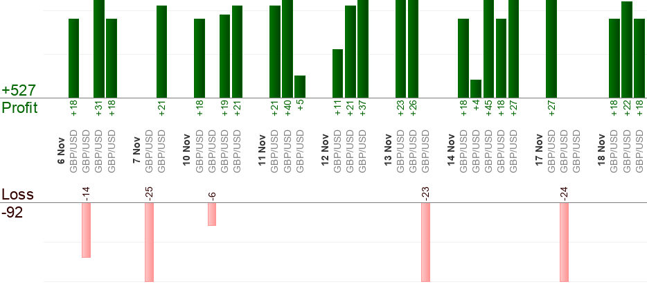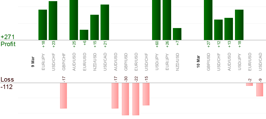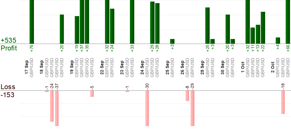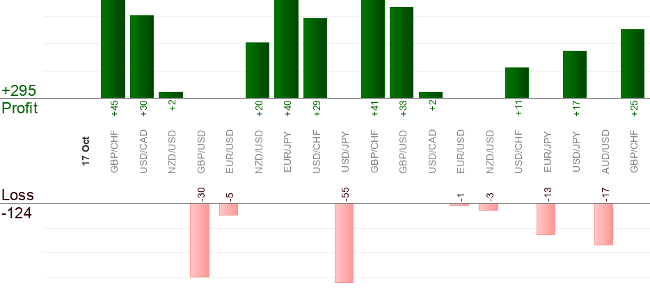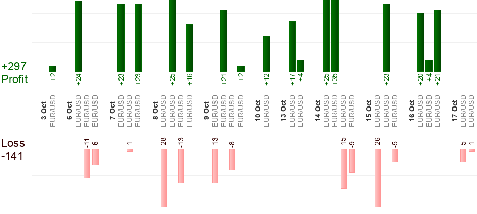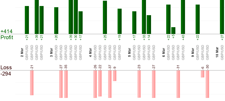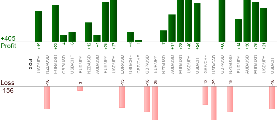 Veuillez garder à l'esprit que différents courtiers vous donneront des cotations et des prix différents à un moment précis. La différence est habituellement d'environ 5 pips et peut-être plus. Pour surmonter ce problème Live-forex-signals.com essaie de faire une moyenne des quotités de différents courtiers et fournit une «moyenne» des résultats. Néanmoins, il est possible que votre opération de change atteigne l'entrée/le take-profit/le niveau de stop-loss, lorsque l'opération de change Live-forex-signals.com ne fonctionne pas et vice versa, en raison d'une différence de quotité.