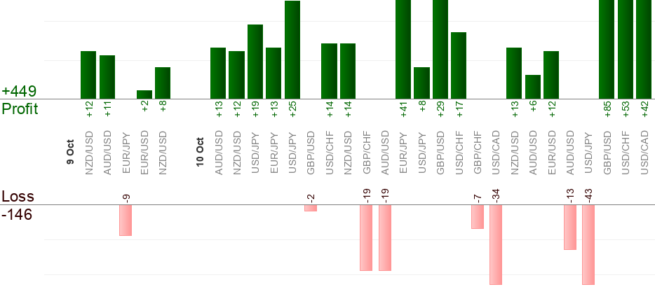 Observe que corretores diferentes lhe fornecerão cotações e preços diferentes em momentos específicos. A diferença é por vezes de 5 pips ou mais. Para ultrapassar este problema o Live-forex-signals.com tenta fazer a média entre várias cotações de diferentes correctoras e dar um resultado médio. Contudo, é possível que a negociação atinja parâmetros de entrada/redenção de lucros/travar-queda enquanto o Live-forex-signals.com ainda não o fez e vice-versa, devido às diferenças nas cotações.