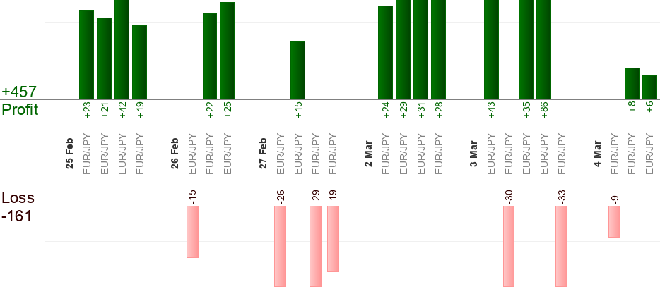 Следует установить отложенный ордер, когда появляется новый сигнал (во время "С"). Время "По" предназначено для принудительного закрытия. Любая открытая позиция становится "Исполнена", когда достигается время "По". Любой отложенный ордер становится "Отменен", когда достигается время "По". Используйте трейлинг-стоп для максимизации прибыли.